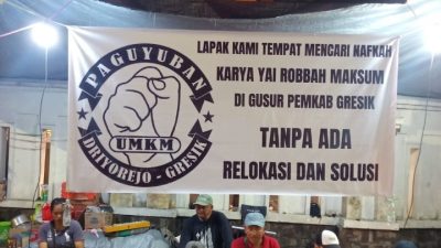 Gresik || RADARJATIM.CO ~ Sejak 15 lalu berjalannya aksi demo 42 pedagang lapak yang terhimpun dalam Paguyuben Pedagang Semambung , Dusun Semambung Desa Driyorejo didampingi Genpatra tetap akan terus bersikukuh untuk melakukan aksi demo di kantor DPRD Kabupaten Gresik. Persoalan penggusuran ini tidak hanya menjadi persoalan kabupaten Gresik, dan propinsi Jawa Timur saja, tapi saat ini sudah menjadi polemik nasonal setelah turunnya surat dari Komnas HAM secara resmi.