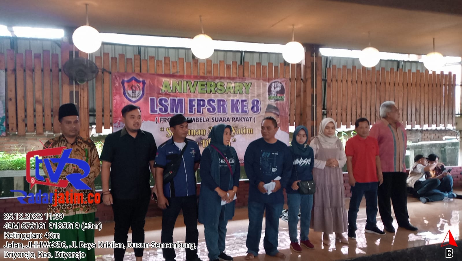 Gresik, RADARJATIM.CO – Lembaga Swadaya Masyarakat (LSM) Front Pembela Suara Rakyat (FPSR) memperingati hari ulang tahun (HUT) yang ke-8 dengan menyantuni ratusan anak yatim dan dhuafa.
