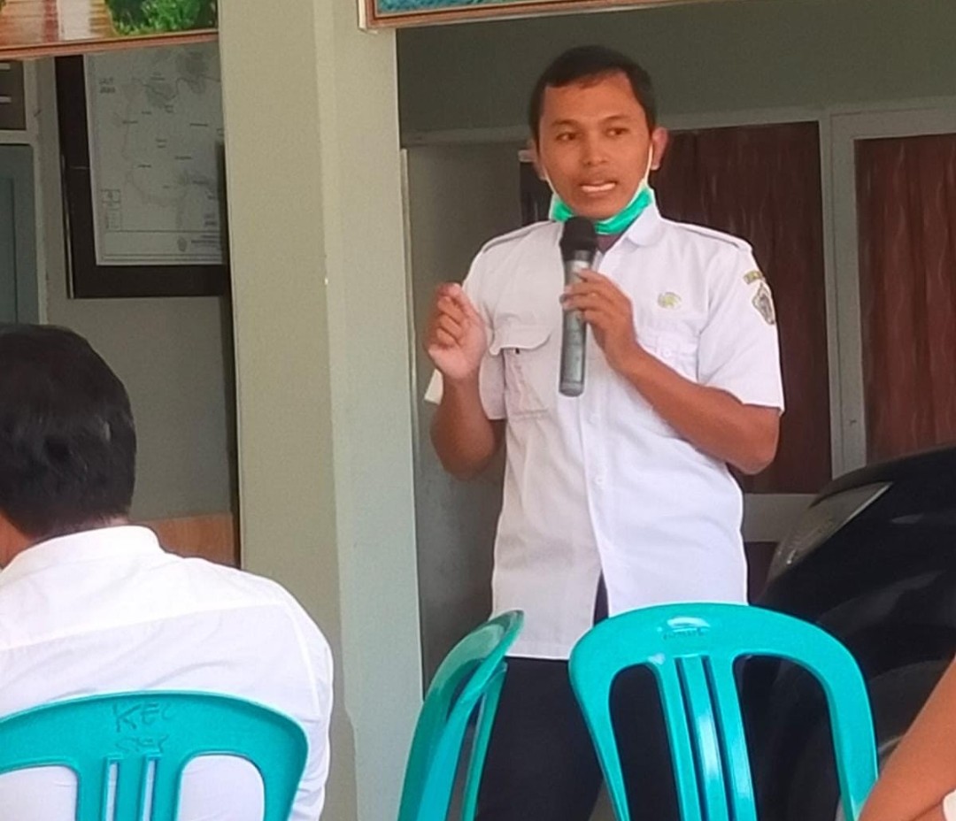 Foto : Sekdes Sidogedungbatu,Zaenul saat menyampaikan pengalamannya untuk berbagi tentang pentingnya Aplikasi Simpel Desa terhadap Sekdes dari 16 Desa di Kecamatan Sangkapura