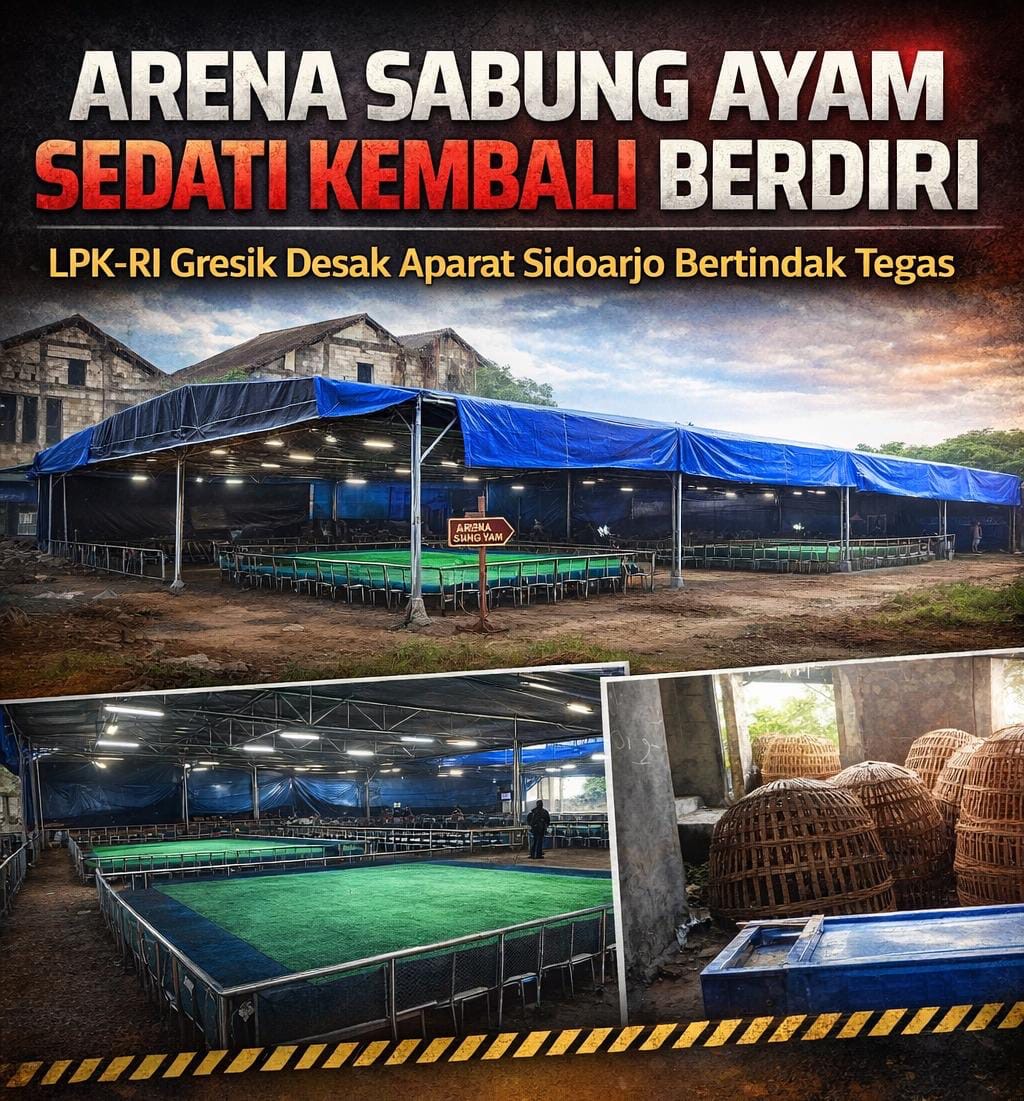 Sidoarjo || Radarjatim.co – Praktik judi sabung ayam di Desa Pepe, Kecamatan Sedati, Kabupaten Sidoarjo, kembali memicu polemik setelah arena perjudian tersebut berdiri kembali dengan bangunan yang lebih permanen dan terorganisir, meski sempat dibongkar dan dibakar oleh aparat gabungan pada 9 Februari 2026.