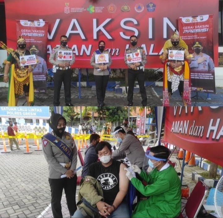 Kapolres Gresik AKBP Arief Fitrianto.,S.H.,S.I.K.,M.M.,melalui Kanit Regident Sat Lantas IPDA M Yan Harry irmanto S. Tr.K.,mengatakan giat ini dalam rangka mendukung program pemerintah terkait percepatan vaksinasi Covid-19. Pihaknya berharap pandemi segera berakhir dan masyarakat bisa beraktivitas normal kembali.