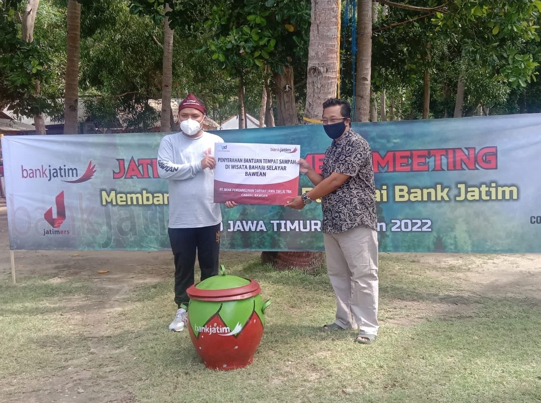 Suyatno menambahkan bahwa Bank Jatim Cabang Bawean ikut serta dalam kepedulian terhadap lingkungan dan kebersihan dengan memberikan bantuan berupa 5 tong sampah dan 2 bak air kepada pihak pengelola Wisata Bahari Selayar, dimana Pemerintah Desa sungai Rujing telah memfasilitasi tempat untuk acara kegiatan Jatim Improvement Meeting, Sabtu (19/2/2022)