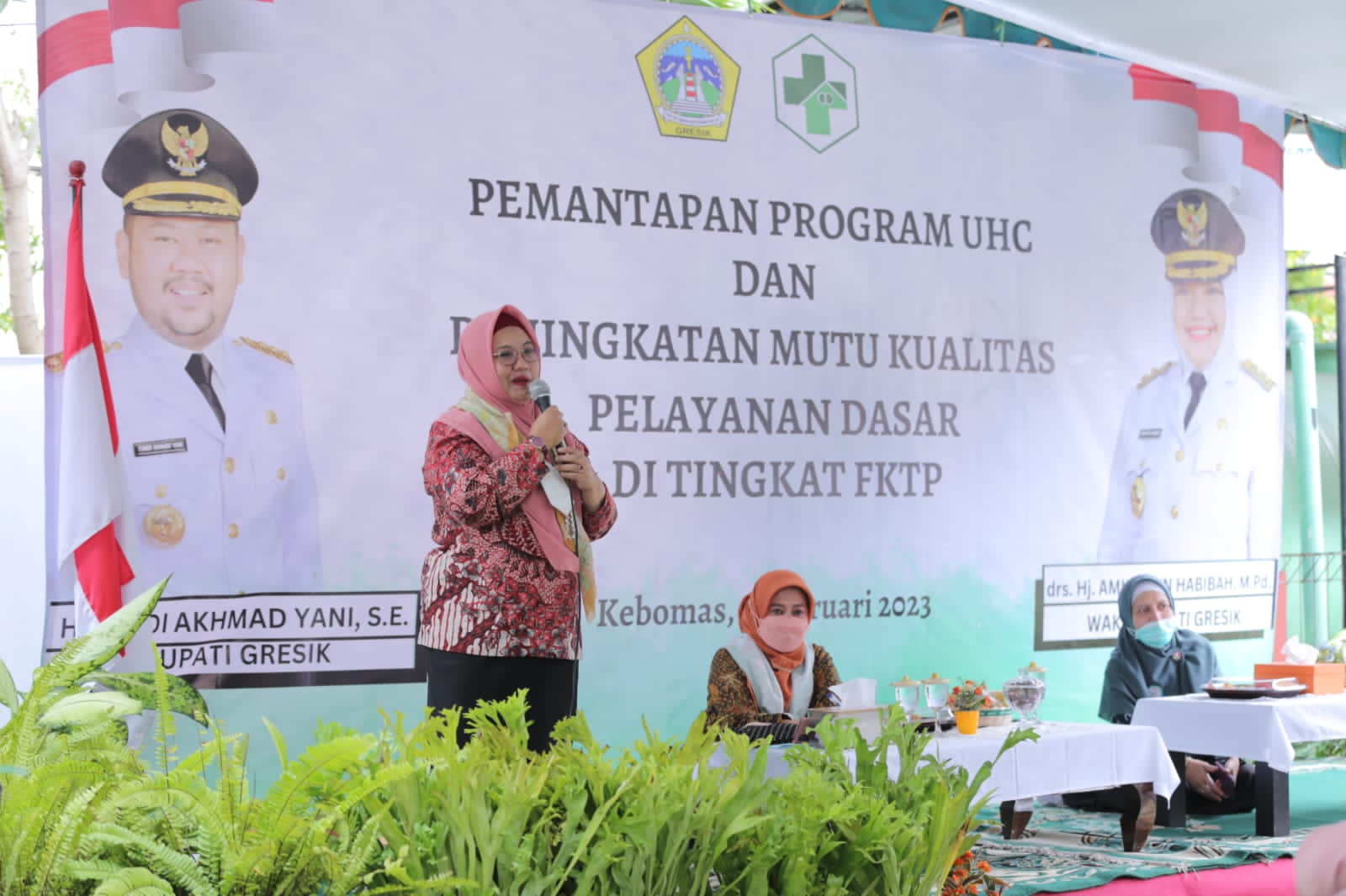 Gresik, Radarjatim.co – Berkunjung ke Puskesmas Kebomas, Kabupaten Gresik, Wakil Bupati Gresik Hj. Aminatun Habibah ingin agar pelayanan kesehatan melalui program Universal Health Coverage (UHC) diaplikasikan optimal. Hal ini supaya dapat menjangkau seluruh masyarakat terutama di sekitar kecamatan Kebomas.
