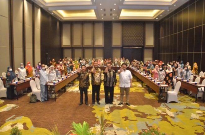 Di dampingi Kepala Dinas Keluarga Berencana, Pemberdayaan Perempuan dan Perlindungan Anak (KBPPPA) Saifudin Ghozali Sekretaris Daerah Kabupaten Gresik, Achmad Washil Miftahul Rachman membuka kegiatan Training of Trainer (TOT) pendamping Desa dan tim pelaksana Bunda Puspa (Bantuan Untuk Pemberdayaan Perempuan Usaha dan Pendidikan Anak) Kabupaten Gresik tahun 2022 di Hotel Aston Inn GKB, Kamis (28/7/2022).