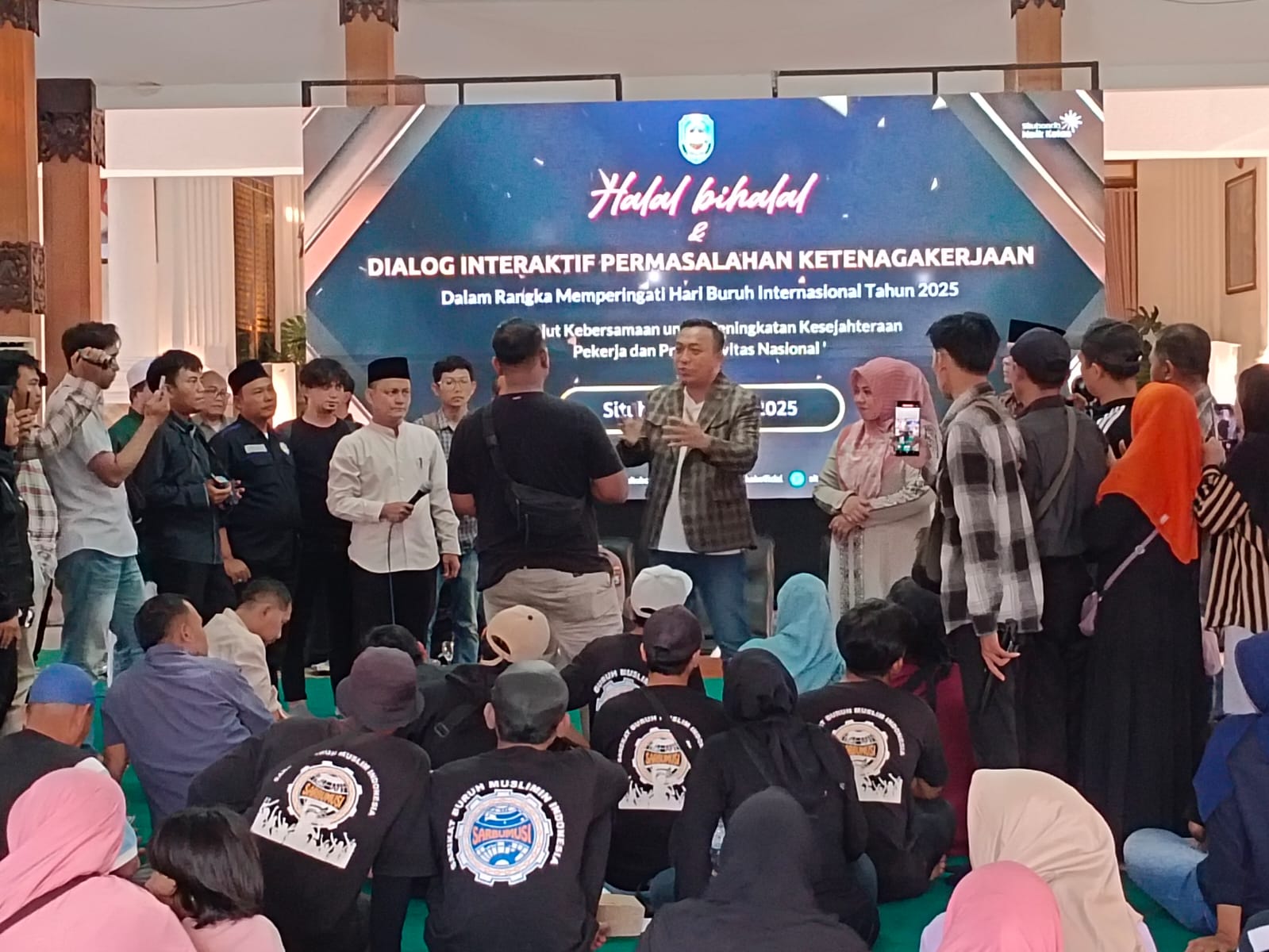 Melalkukan dialog interaktif Peringatan Hari Buruh Internasional yang mengambil