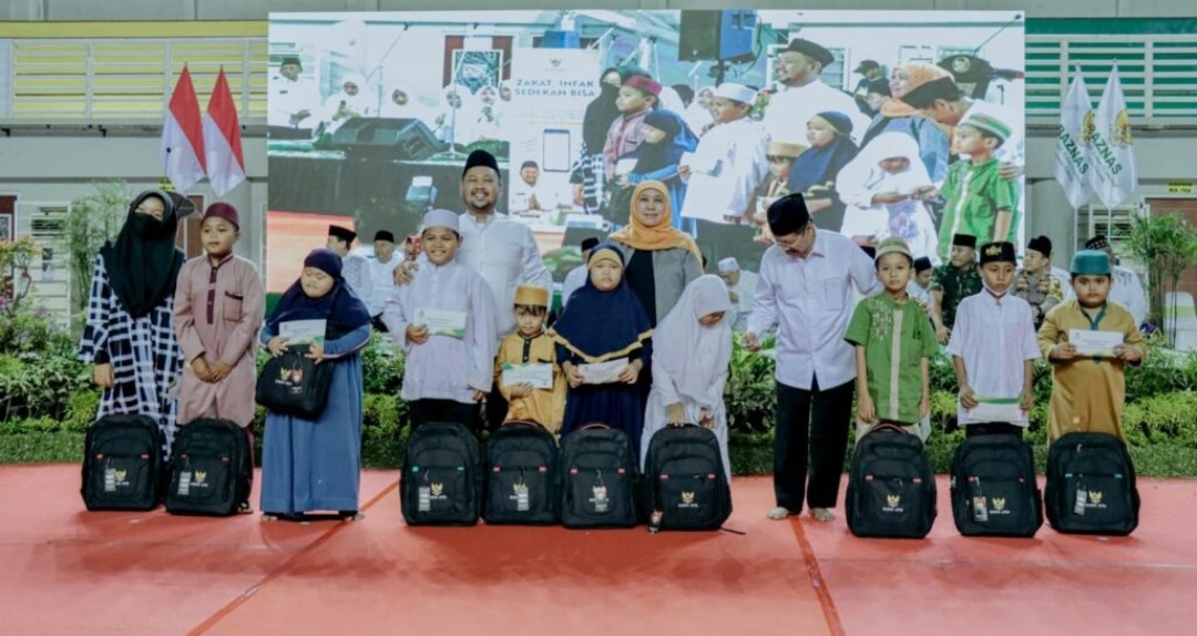 Gresik || radarjatim.co– Bupati Gresik Fandi Akhmad Yani dan Wakil Bupati Gresik Aminatun Habibah mendampingi Gubernur Jawa Timur Khofifah Indar Parawansa berbagi santunan dan paket tas sekolah bersama 1.000 anak yatim dalam acara Baznas Berbagi Ceria. Nampak wajah anak-anak yatim tersebut begitu ceria saat menerima bantuan.