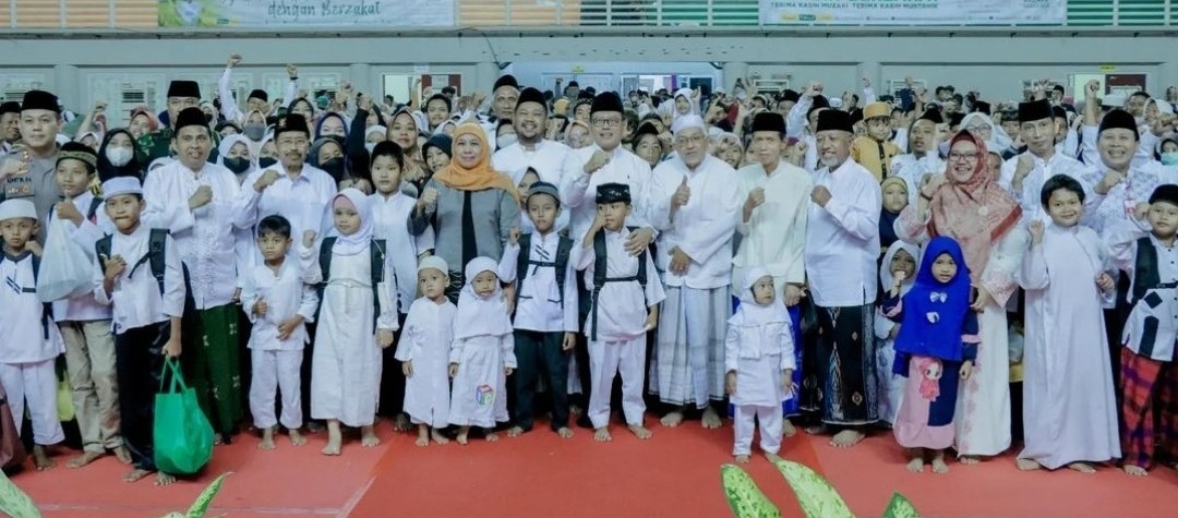 Bupati Gresik Bersama Wabup Dampingi Gubernur Jatim Berbagi 1000 Santunan Anak Yatim