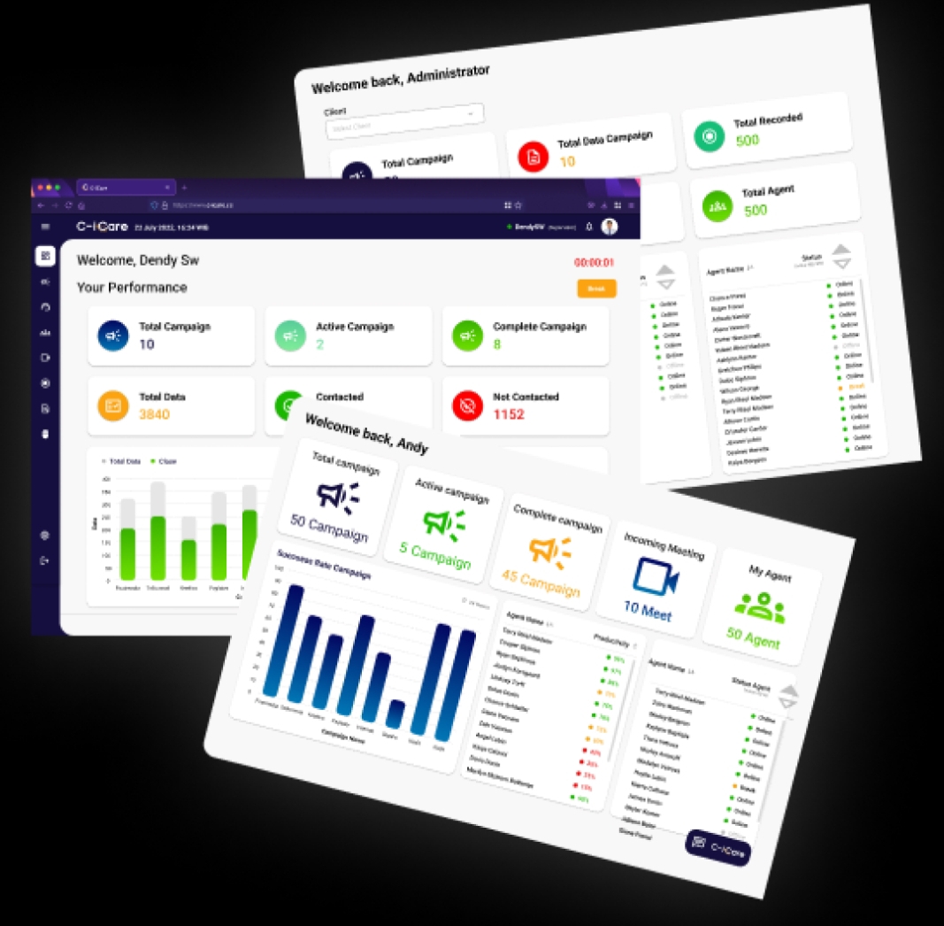6. Fitur Lengkap: C-iCare dilengkapi berbagai fitur unggulan seperti sistem tiket yang terintegrasi dengan media sosial dan telefoni, live monitoring agent, dan sistem pelaporan yang dapat disesuaikan. Semua fitur ini dirancang untuk meningkatkan pengalaman call center Anda.