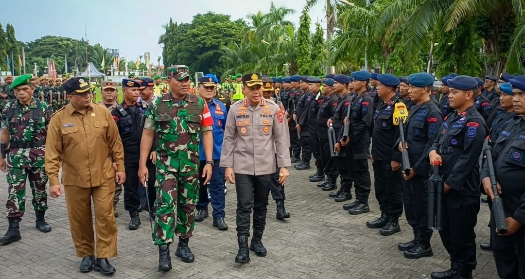 Selanjutnya Dandim 0817/Gresik bersama Kapolres Gresik serta Sekda Gresik melaksanakan pengecekan personil dan materiil yang akan digunakan dalam kegiatan Pam VVIP Kunjungan kerja Wapres RI guna memastikan kesiapan dalam melaksanakan tugas pengamanan.