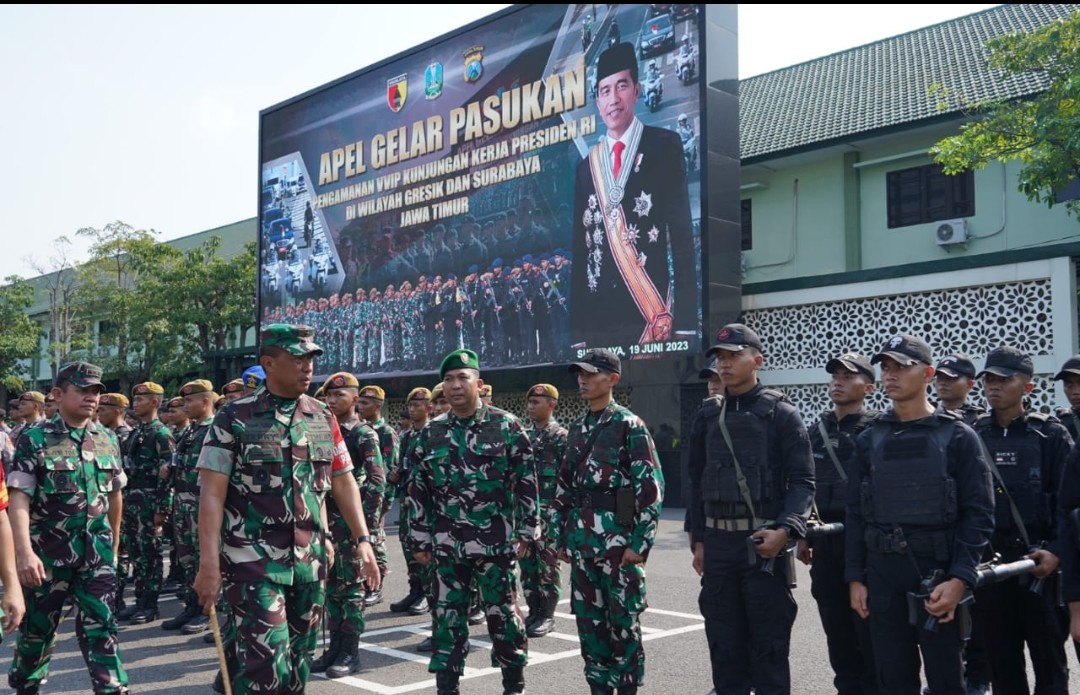 Dalam sambutanya Danrem 084/BJ Brigjen TNI Terry mengatakan, apel gelar pasukan pengamanan VVIP kunjungan Presiden di wilayah Surabaya dan Gresik ini dilakukan untuk mengecek kesiapan Satuan Tugas Pengamanan VVIP, baik secara Organisasi, Personel, Materiil, Alat Perlengkapan maupun sarana pendukung lainnya yang akan digunakan dalam tugas pengamanan.
