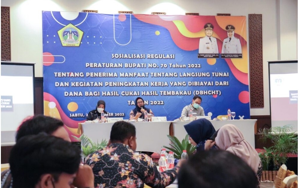 Gresik || radarjatim.co–Pemerintah Kabupaten Gresik propinsi Jawa timur terus berupaya memaksimalkan penggunaan Dana Bagi Hasil Cukai dan Hasil Tembakau (DBH CHT), untuk kesejahteraan masyarakat. Kali ini, bersama Dinas Sosial Kabupaten Gresik mengadakan sosialisasi regulasi Perbup No. 70 Tahun 2022, Sabtu (24/12/2022).