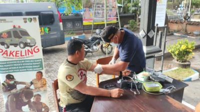 Gilimanuk, Jembrana||Radarjatim.co – Dalam rangka menjaga kesehatan personil kepolisian, Tim Dokes Klinik Pratama Polres Jembrana melaksanakan pemeriksaan kesehatan rutin terhadap personil Polsek Kawasan Pelabuhan Gilimanuk pada Sabtu pagi (19/10). Kegiatan yang berlangsung di Lobi Mako Polsek Kawasan Pelabuhan Gilimanuk ini dimulai pukul 07.30 WITA dan diikuti oleh 25 anggota Polsek.