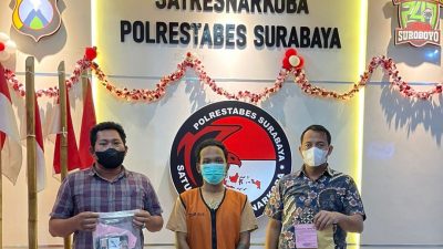 “Memang pelaku ini sudah incaran kami,dan pelaku kita tangkap di rumahnya jalan Jedong Kelurahan, Pacar Keling, Kecamatan Tambaksari, Surabaya,” ujar Kasatreskoba Polrestabes Surabaya AKBP Daniel Marunduri.