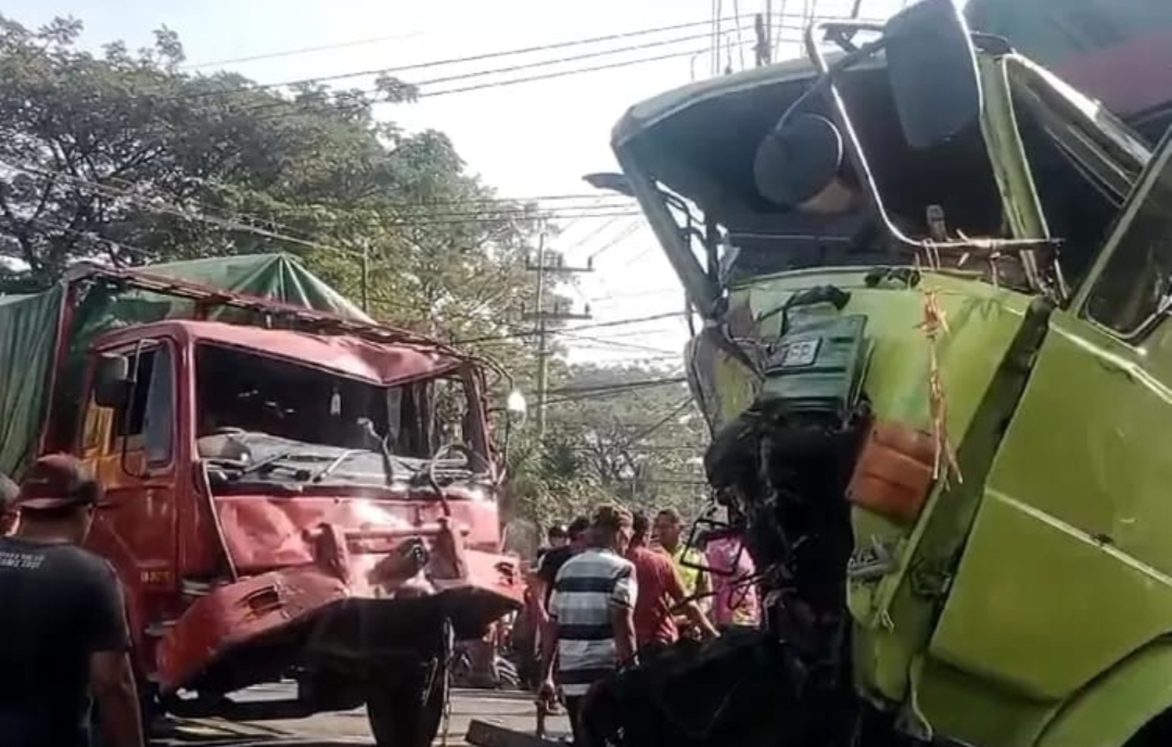 Saat terjadi tabrakan, kedua truk melintang di badan jalan dan mengakibatkan arus lalin macet.
