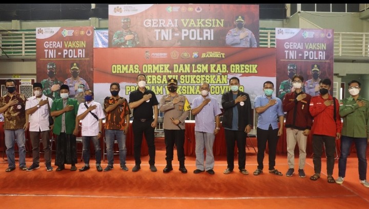 Gencarkan Vaksinasi untuk Pencegahan Covid 19, Polres Gresik Bersinergi dengan Ormas,Ormek dan LSM