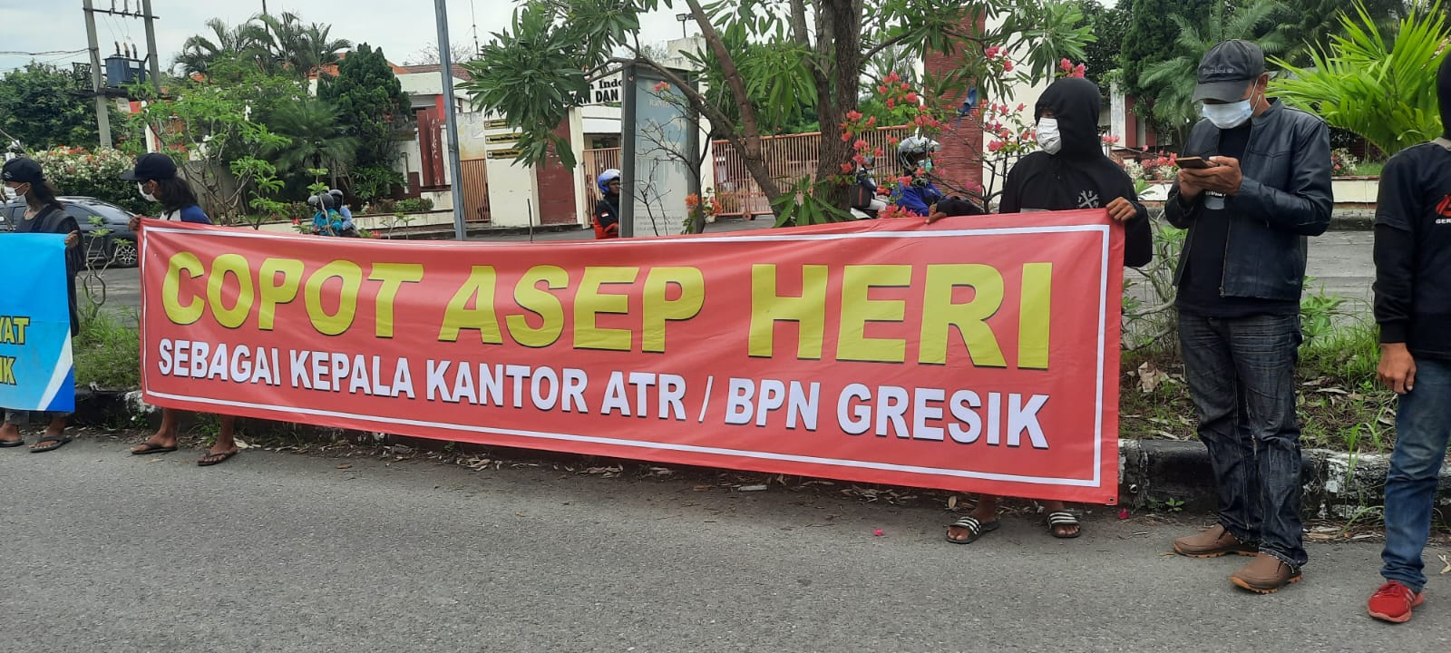 Mereka kembali menggeruduk kantor Badan Pertanahan Kabupaten Gresik tersebut karena menganggap BPN sebagai sarang mafia tanah.