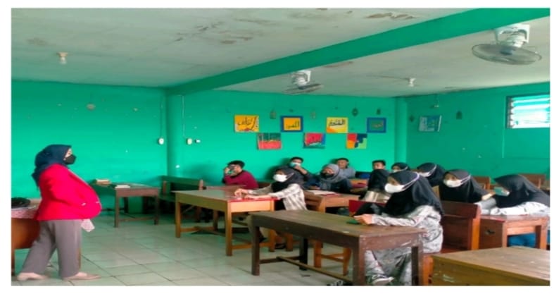 Anisa Khaerani, salah satu mahasiswi yang melakukan pendampingan di Yayasan SMP Bahrul Ulum didampingi ibu Rahma Kusumandari S.Psi., M.Psi., Psikolog selaku dosen pendampingnya untuk mengetahui masalah yang dialami siswa.