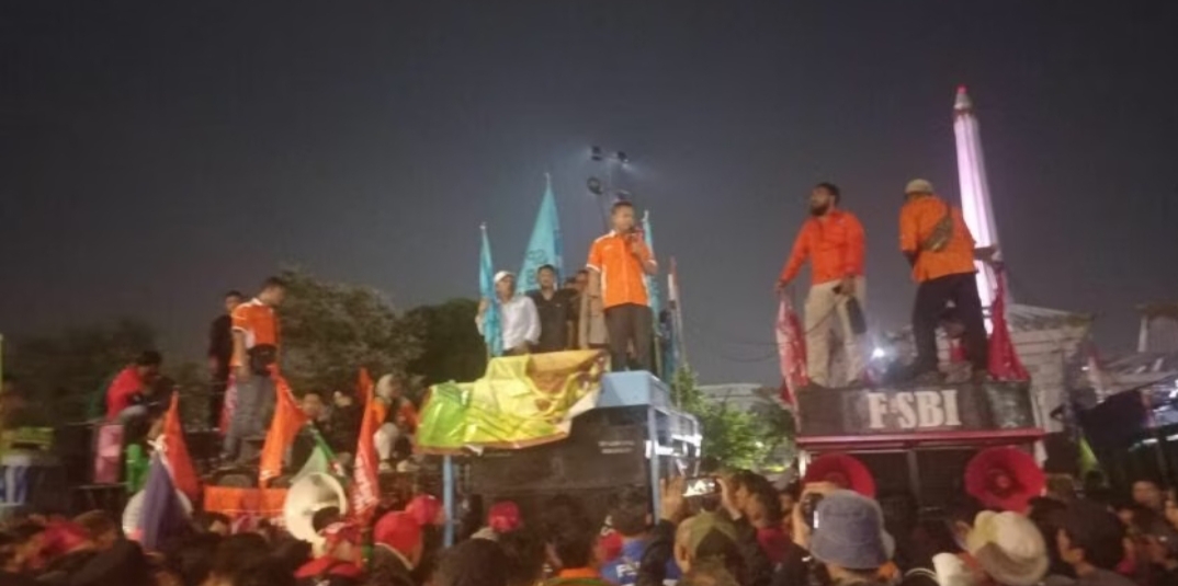 FOTO: Suasana aksi demonstrasi di depan Kantor Gubernur Jatim Jalan Pahlawan Surabaya pada malam hari setelah ditemui Adhy Karyono Sekdaprov Jatim, Kamis (30/11/2023).