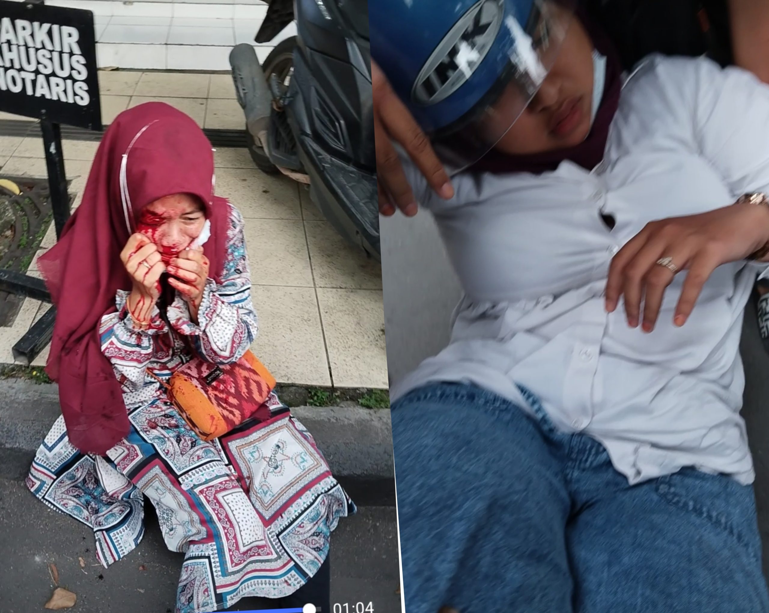 Setelah itu, saat kejadian warga sekitar yang berada dekat area insiden tersebut melihat dua korban luka parah pada wajah berlumuran darah dan korban yang satunya diduga mengalami patah tulang kaki hingga jatuh tergeletak di tengah jalan akhirnya diangkat ke pinggir trotoar untuk dibawa ke RS Petrokimia Gresik untuk mendapatkan pertolongan medis.