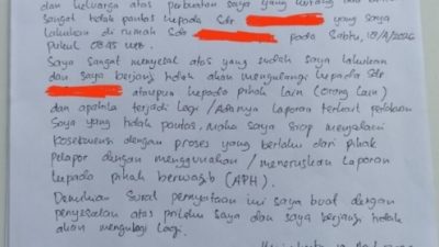 Terduga pelaku diketahui hanya menyampaikan permohonan maaf dan menandatangani surat pernyataan pengakuan bersalah serta berjanji tidak akan mengulangi perbuatan tersebut. Ironisnya, surat keterangan ini dibuat oleh pihak pengurus desa, tanpa melalui proses hukum yang jelas dan tegas.