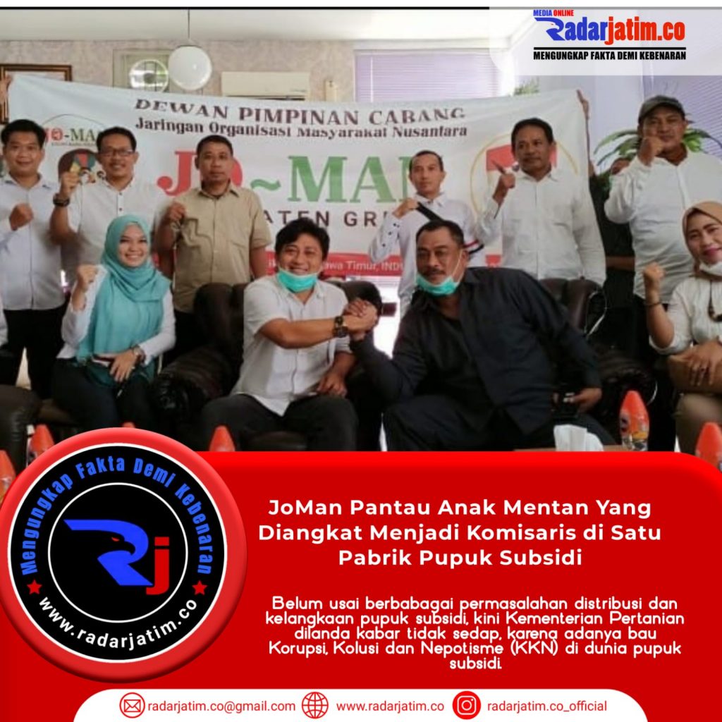 Beberapa waktu yang lalu, DPD Joman Jatim juga mengungkapkan Pendistribusian pupuk subsidi dari pabrik hingga saat ini masih mengalami banyak penyimpangan sehingga mengakibatkan seringnya terjadi kelangkaan pupuk.
