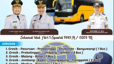 GRESIK | RADARJATIM.CO. ~ Pemkab Gresik melalui Dinas Perhubungan Kabupaten Gresik kembali menyelenggarakan mudik gratis. Acara bertajuk Mudik Gratis Bareng Gus Yani dan Bu Min akan digelar pada Sabtu 6 April 2024 mendatang di Halaman Kantor Bupati Gresik.