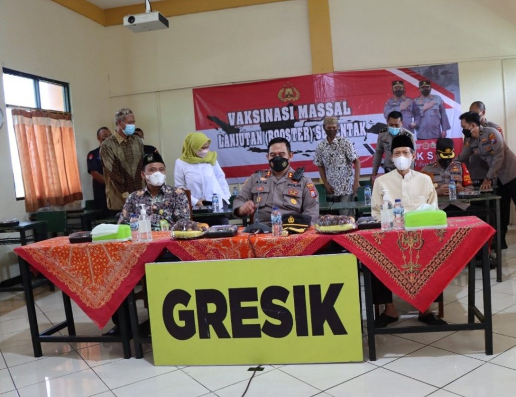 “Kami menggelar vaksinasi massal di SD Nurul Ishlah Randuagung Kebomas Gresik Vaksin Brooster sebanyak 366 Siswa-siswi selama 2 Hari pada Tanggal 15 Februari 2022 sampai dengan 16 Feberuari 2022.” tutur Kapolres Gresik.
