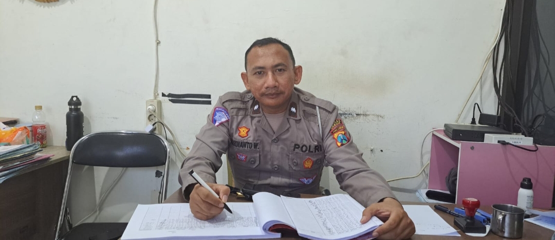 Keterangan Foto: Baur SIM Satlantas Polres Gresik, Aipda Mardianto saat interview dengan radarjatim.co. di ruang kerjanya Satpas Satlantas Polres Gresik, (Tasripan), Selasa (5/9/2023).