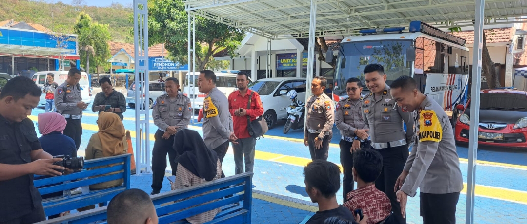 Terlihat Kapolres Gresik menyapa ramah ke pemohon SIM yang akan menjalani ujian teori maupun praktek di Satpas Polres Gresik