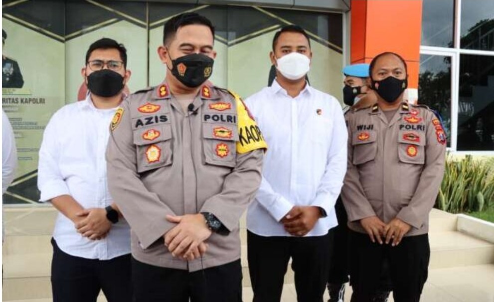 Alumnus Akpol 2002 ini menyampaikan perkembangan terbaru kasus penodaan agama kepada wartawan di halaman Mapolres Gresik, Senin (13/6,/2022).