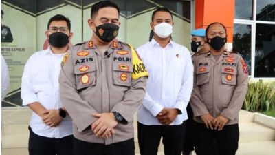 Alumnus Akpol 2002 ini menyampaikan perkembangan terbaru kasus penodaan agama kepada wartawan di halaman Mapolres Gresik, Senin (13/6,/2022).