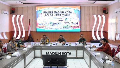 “Untuk wilayah Kota Madiun ,Polres Madiun Kota bersama Kodim 0803 sudah menyiapkan pola pengamanan sesuai dengan pemetaan wilayah rawan dan lain-lainnya, yang tentunya berpedoman pada apa yang menjadi arahan pimpinan termasuk pada Vidcon yang dilaksanakan hari ini tadi”,pungkas Kapolres.
