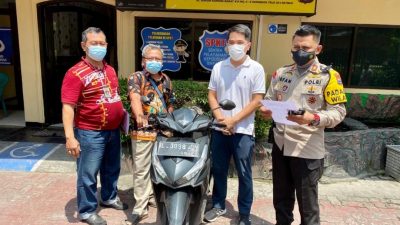 Surabaya,[ radarjatim.co –Unit Reskrim Polsek Dukuh Pakis jajaran Polrestabes Surabaya kembalikan sepeda motor merk Vario kepada pemiliknya,yang merupakan korban pelaku pencurian kendaraan bermotor (curanmor) yang terjadi depan Hotel di Jl.Kupang Jaya Surabaya.pada Rabu, 7 Desember 2022.