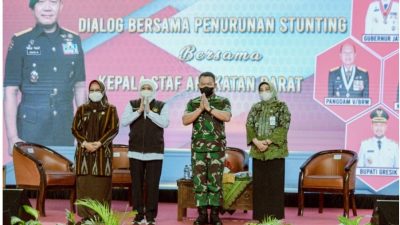 “Lalu bagaimana kalau sudah terlahir stunting, kita sekarang mendapat referensi dari Bapak Kasad adalah harus ada Bapak asuh dan Ibu asuh, dan hadirnya Bapak Kasad Gaungnya tidak hanya di Gresik dan Jawa timur tetapi Gaungnya bisa menjadi referensi se-Indonesia untuk bergotong royong dalam menangani masalah-masalah serius, berdasarkan data dari SSGBI stunting Jawa timur sudah berada di 23.5 Persen dan dibawah rata-rata nasional, Gresik 23 persen dan tentu dengan hadirnya Bapak Kasad dapat memotivasi kami semua gerakan pola asuh untuk lebih gerak cepat dan berkomitmen kuat untuk menjaga SDM harus dijaga kualitasnya dengan menghindari, kurangi dan turunkan Stunting.”tambah Gubernur Jatim.