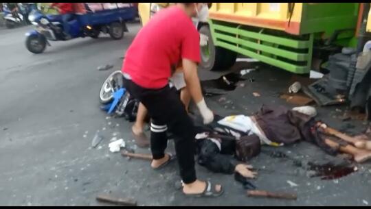 Kecelakaan yang melibatkan tiga truk dan korban satu pengendara motor Honda bernopol W-6402-XB. Ahmad Syaifudin(54) warga Desa Sidokerto Rt.02, Rw.03 Kecamatan Buduran kabupaten” Sidoarjo, Korban tewas usai kejepit truk bernopol N-8322-UZ yang dikemudikan Buadianto (51) asal dusun Krajan Rt.03, Rw.01 Desa Tempeh Kidul Kec.tempeh Kab lumajang