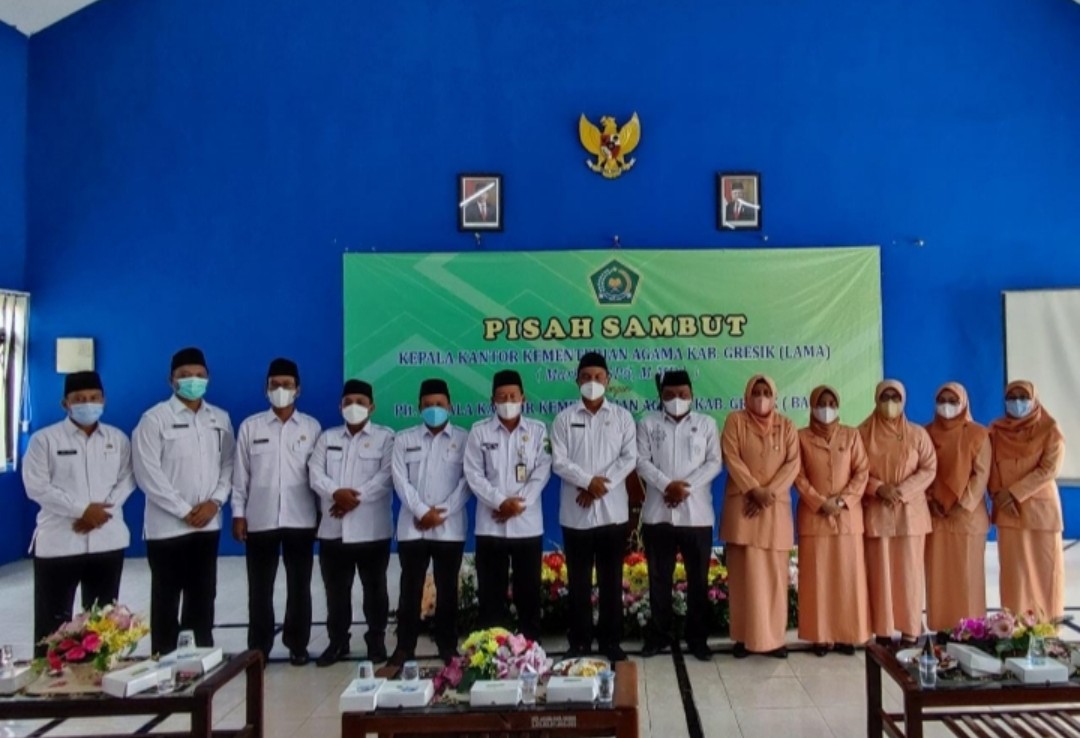 Gresik,| www.radarjatim.co – Kantor Kementerian Agama Kabupaten Gresik mengadakan acara pisah sambut Markus. S. Pd. M. Pd Kemenag Kabupaten Gtesik kepada Kemenag yang baru Plt. H. Fauzi. SE. MHI. MPdI. Selasa (18/2/2022).