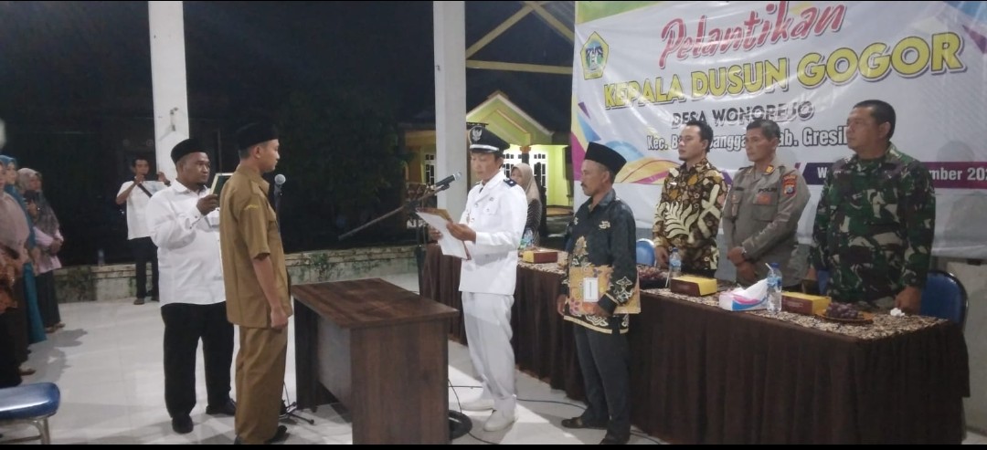 Gresik || radarjatim.co~Pelantikan dan pengambilan sumpah jabatan kepala dusun Gogor Yang di gelar di Kantor Desa Wonorejo , Kecamatan Balongpanggang, Kabupaten Gresik Pada Senin 14/11/2022 sekitar pukul 19 :00 waktu indonesia barat (WIB).