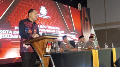 Surabaya | radarjatim.co ~ Komisi pemilihan umum (KPU) kota Surabaya melaksanakan tahapan akhir pilkada kota Surabaya tahun 2024 dengan menetapkan pasangan Eri-Armuji sebagai pemenang terpilih menjadi walikota Surabaya dan wakil walikota Surabaya.kamis (9/01/2025) acara tersebut berjalan lancar.