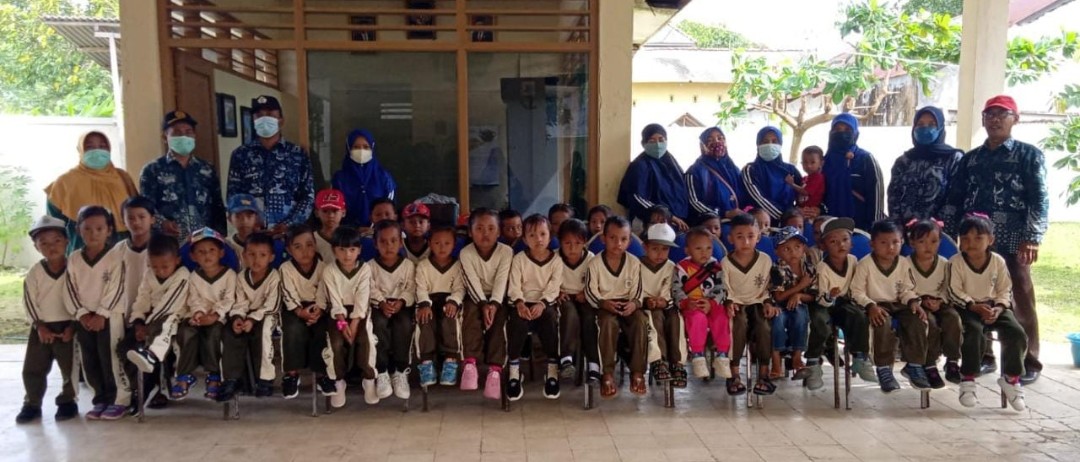 Foto : Kepala Unit Pelaksana Teknis (UPT) Dinas Pariwisata Ekonomi Kreatif Kebudayaan Pemuda dan Olah Raga Wilayah Bawean, Suwasis, S.Sos bersama para guru dan siswa-siswi sekolah TK saat menggelar kunjungan untuk melihat kantor UPT. Sebagai edukasi menanamkan rasa kecintaan dan kepedulian terhadap kemajuan dan pengembangan pariwisata di pulau Bawean