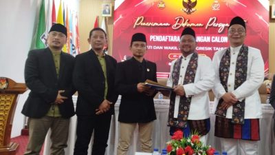 Gresik || Radarjatim.co – Resmi dibuka pendaftaran pasangan calon (Paslon) pada Pemilihan Bupati Gresik. Pendaftaran dibuka selama tiga hari hingga 29 Agustus 2024 mendatang.