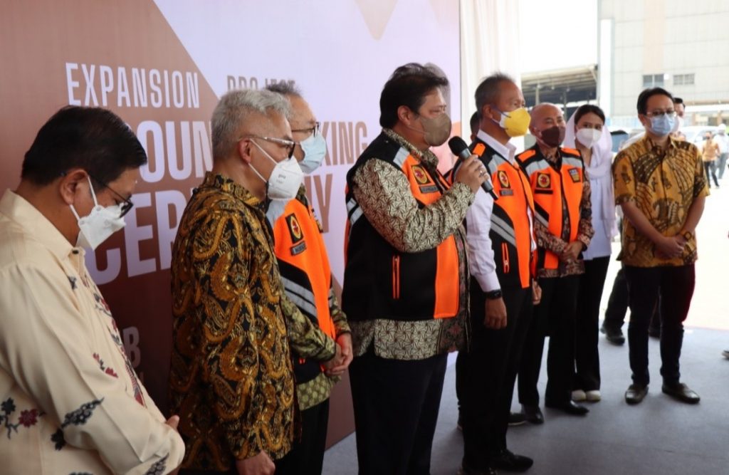 Gresik | RADARJATIM.CO – Menteri Koordinator Bidang Perekonomian Airlangga Hartarto bersama Menteri Perindustrian Agus Gumiwang menghadiri Ground PT Smelting Gresik.