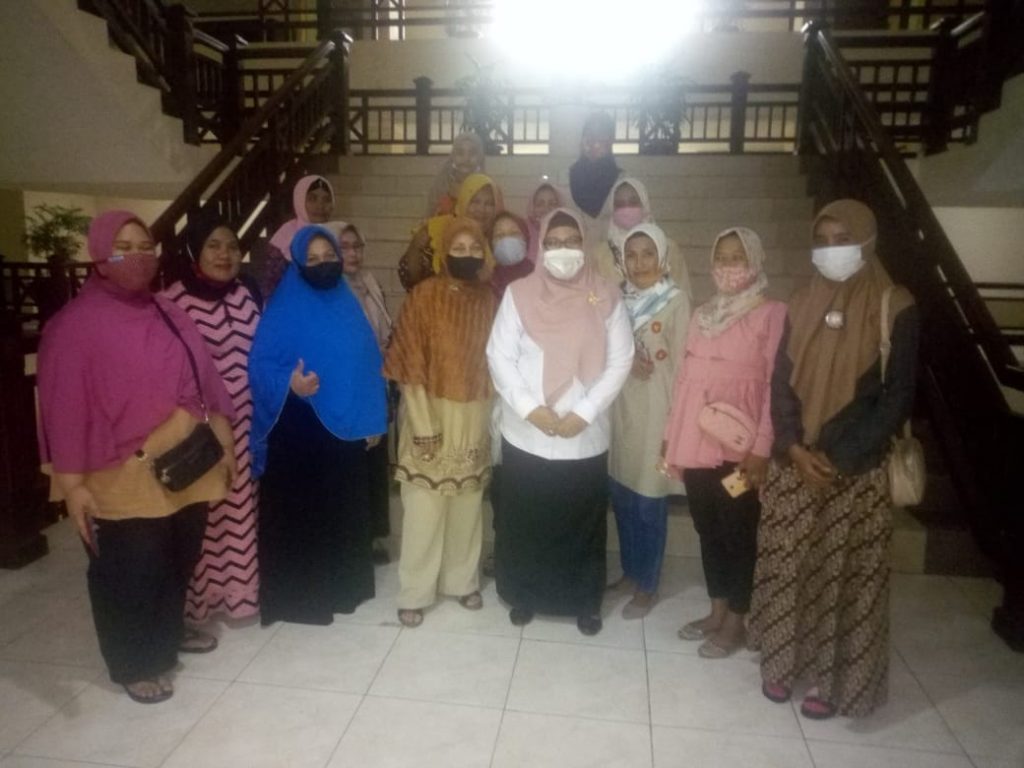 Foto : Wakil Bupati Kabupaten Gresik Hj Aminatun Habibah berbaju putih, saat bersama para ibu dari Forum Komunikasi Nasabah Mekaar dan Ibu Korban Rentenir Kabupaten Gresik.Rabu (31/3/2021)