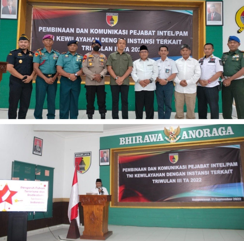 Bnyuwangi | radarjatim.co~Tentara Nasional Indonesia Angkatan Darat Komando Daerah Militer V/Brawijaya menyelenggarakan acara Pembinaan dan Komunikasi Pejabat Intel / Pam TNI bertempat di Aula Makodim 0825 / Banyuwangi. Rabu (21/9/2022.
