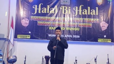 MADIUN || radarjatim.co~Suasana penuh kehangatan menyelimuti Dusun Jatimongal, Desa Bantengan, Kecamatan Wungu, saat keluarga besar SH Terate Pusat Madiun Ranting Wungu menggelar acara Halal Bihalal. Kehadiran Bupati Madiun, H. Hari Wuryanto, menjadi sosok sentral yang memberikan kesan mendalam bagi ratusan warga pesilat yang hadir.