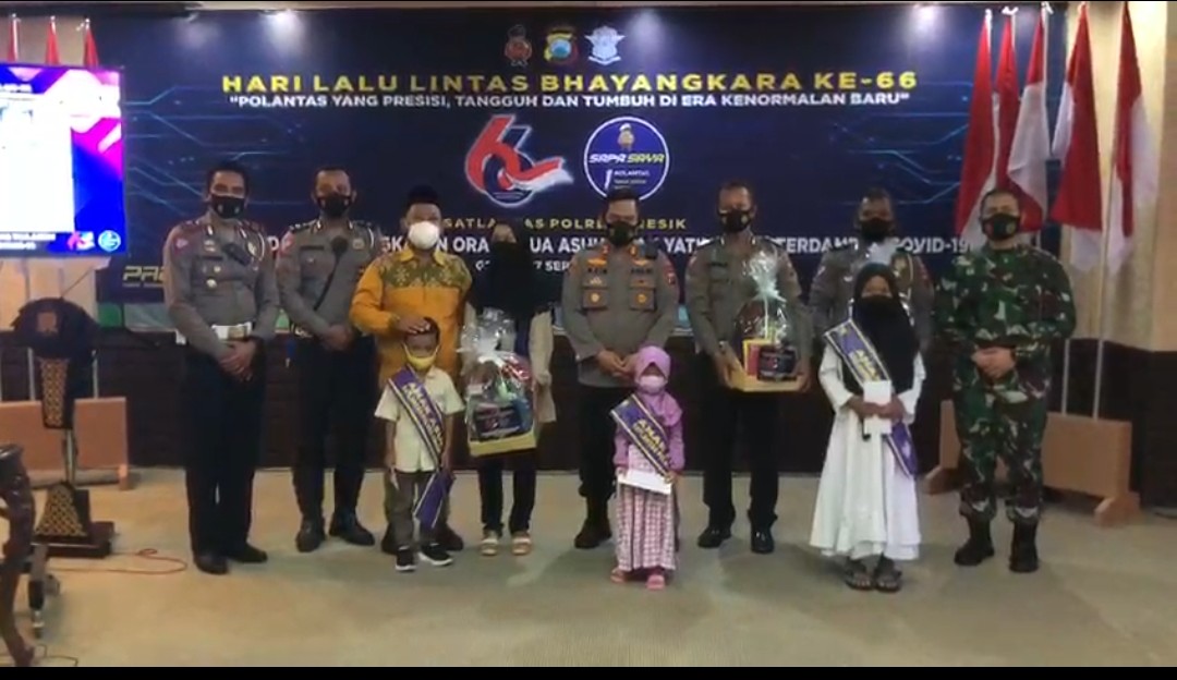Peringati HUT Lantas, 63 Anggota Polantas Gresik Jadi Ortu Asuh Anak Yatim Covid-19