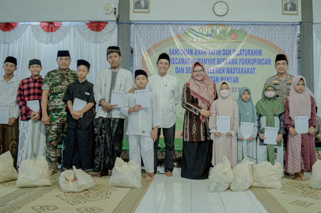 Gresik, Radarjatim.co – Guna memperkuat tali silaturahim bersama elemen masyarakat Kecamatan Manyar, Wakil Bupati Gresik, Aminatun Habibah bersama Forkopimcam dan MUI Manyar menyerahkan santunan kepada 230 anak yatim.