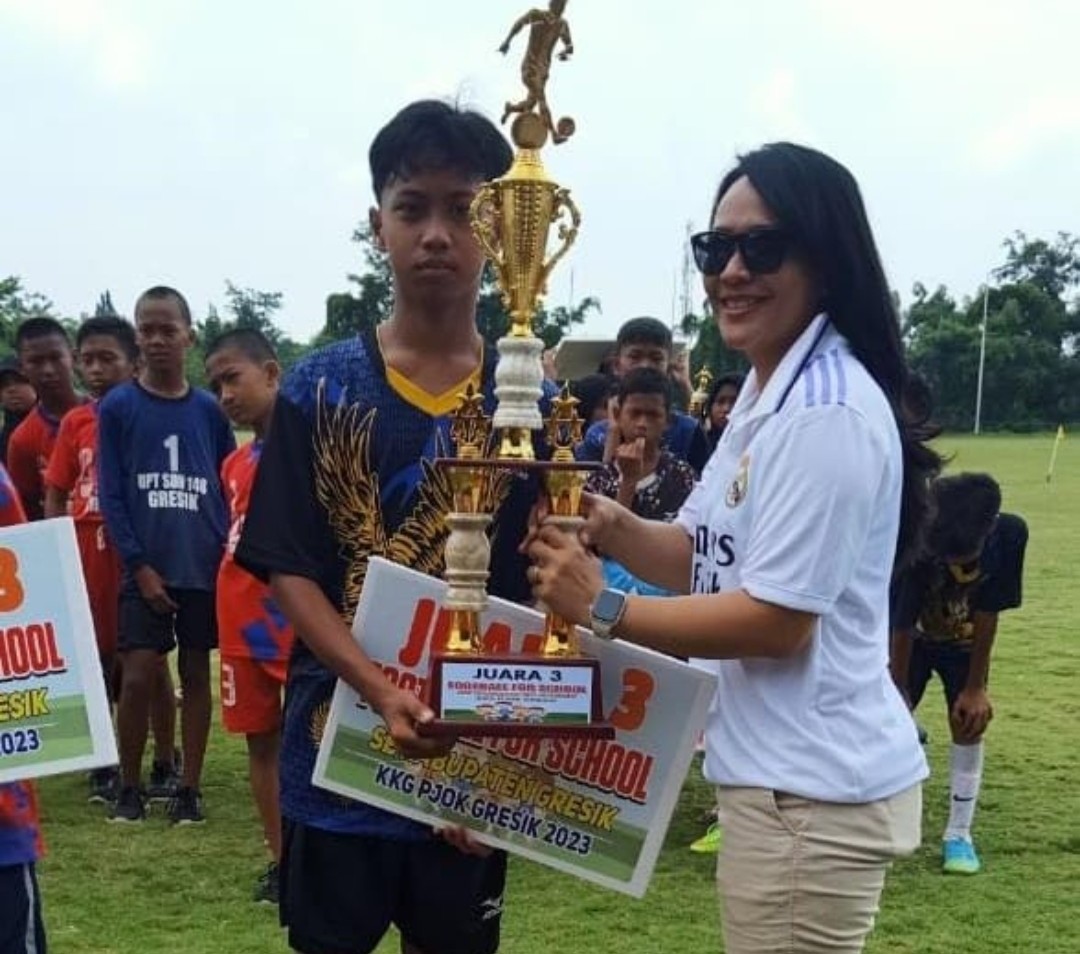 Pertandingan Football For School yang dilaksanakan di Kabupaten Gresik juga dihadiri oleh Sekretaris Asprov PSSI Jatim Dyan Puspito Rini sekaligus menyerahkan hadiah trophy dan penghargaan. Dimana juara satu diraih SDN 63 Gresik Iker Geger (Cerme) beserta pelatih dan pemain putra terbaik, Juara 2 diraih oleh SDN 53 Gresik (Cerme) dan kiper terbaik.