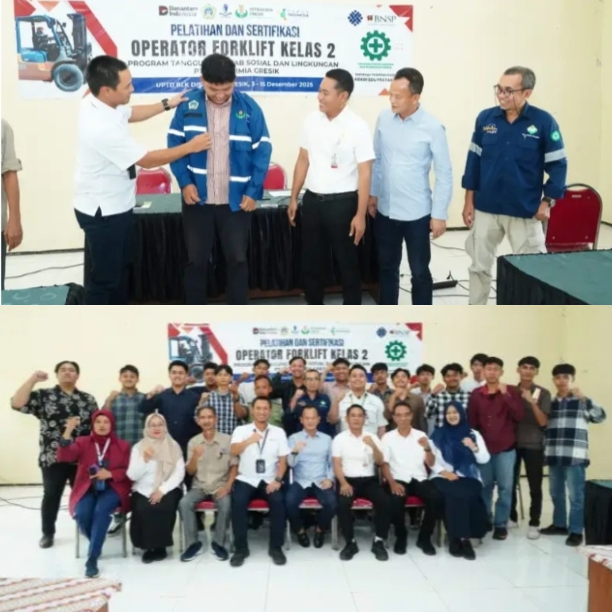 GRESIK || radar jatim.co – Petrokimia Gresik, perusahaan Solusi Agroindustri anggota holding Pupuk Indonesia, berkomitmen mendukung Pemerintah dalam mencetak Sumber Daya Manusia (SDM) lokal yang andal di sektor industrialis melalui program Gagah (Generasi Andalan Gresik Ahli dan Handal). Kali ini direalisasikan perusahaan dengan kegiatan pelatihan dan sertifikasi operator forklift kelas 2 yang diikuti masyarakat sekitar perusahaan. Acara dibuka oleh Vice President (VP) Komunikasi Korporat Petrokimia Gresik, Rama Yusron Harbiansyah mewakili Direktur Utama, Daconi Khotob, di Gresik, baru-baru ini.
