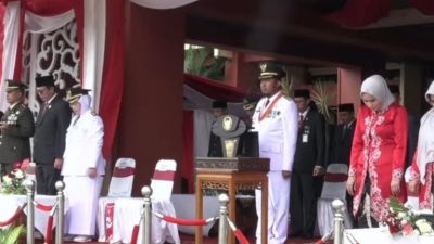 Pada kesempatan itu, bupati Achmad Fauzi bertindak sebagai Inspektur Upacara. Sementara teks Proklamasi dibacakan oleh Ketua DPRD H. Abdul Hamid Ali Munir. Dan kemudian dilanjutkan dengan pengibaran bendera merah putih oleh Pasukan Pengibar Bendera Pusaka (Paskibraka).