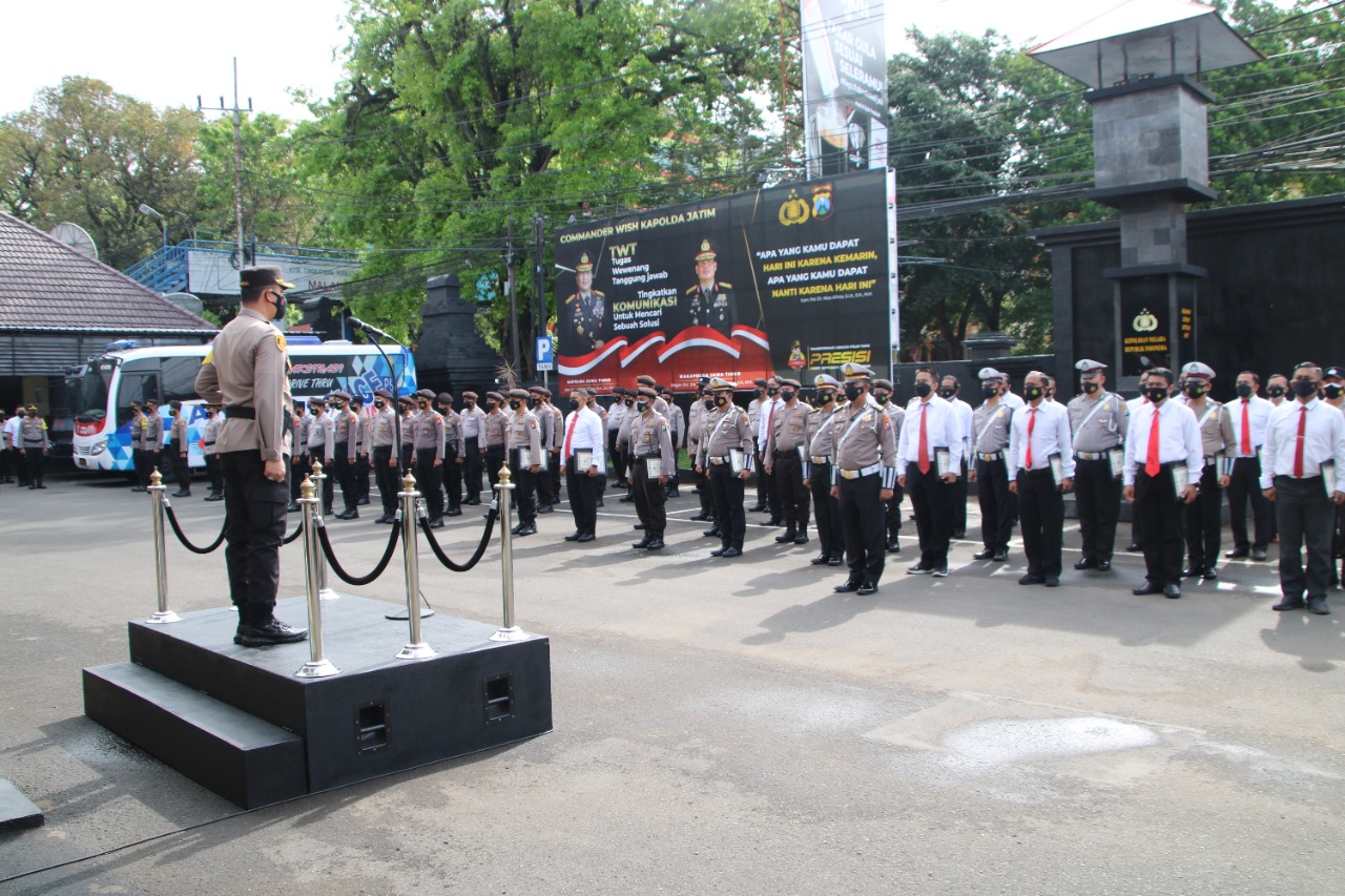 “Saya atas nama Kapolresta Malang Kota mengucapkan selamat kepada anggota yang di naikkan pangkat nya setingkat lebih tinggi sebagai wujud kerja keras,pengabdian serta dedikasi yang tinggi yang telah di berikan oleh bapak ibu sekalian termasuk anggota yang telah berhasil mendapatkan penghargaan, semoga bisa menjadi suri tauladan anggota lainnya dalam rangka memberikan pelayanan,perlindungan dan pengayoman terbaik untuk masyarakat,” Ungkap AKBP Buher di Malang, Senin (1/11/21).